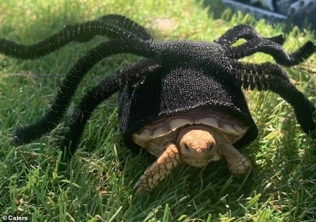 Needless to say, the costumed tortoise is shell-ebrating Halloween with some serious flair!