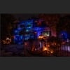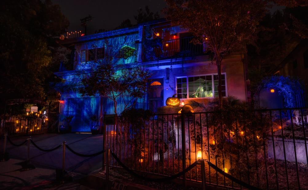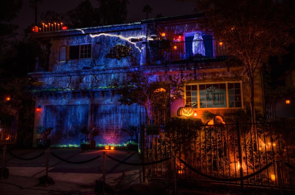 The House at Haunted Hill is a high-tech home haunt consisting of a show set in old Hollywood, 1939. The 20 minute show is viewed from the street and features performers such as Neil Patrick Harris, and Corey Burton from the Disney Haunted Mansion.